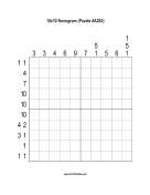 This 10x10 nonogram puzzle is modestly challenging and may be most suitable for beginners. (If you want more than one puzzle at a time, buy one of our printable nonogram puzzle books.)