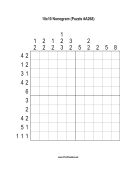 This 10x10 nonogram puzzle is modestly challenging and may be most suitable for beginners. (If you want more than one puzzle at a time, buy one of our printable nonogram puzzle books.)