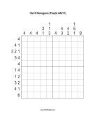 This 10x10 nonogram puzzle is modestly challenging and may be most suitable for beginners. (If you want more than one puzzle at a time, buy one of our printable nonogram puzzle books.)
